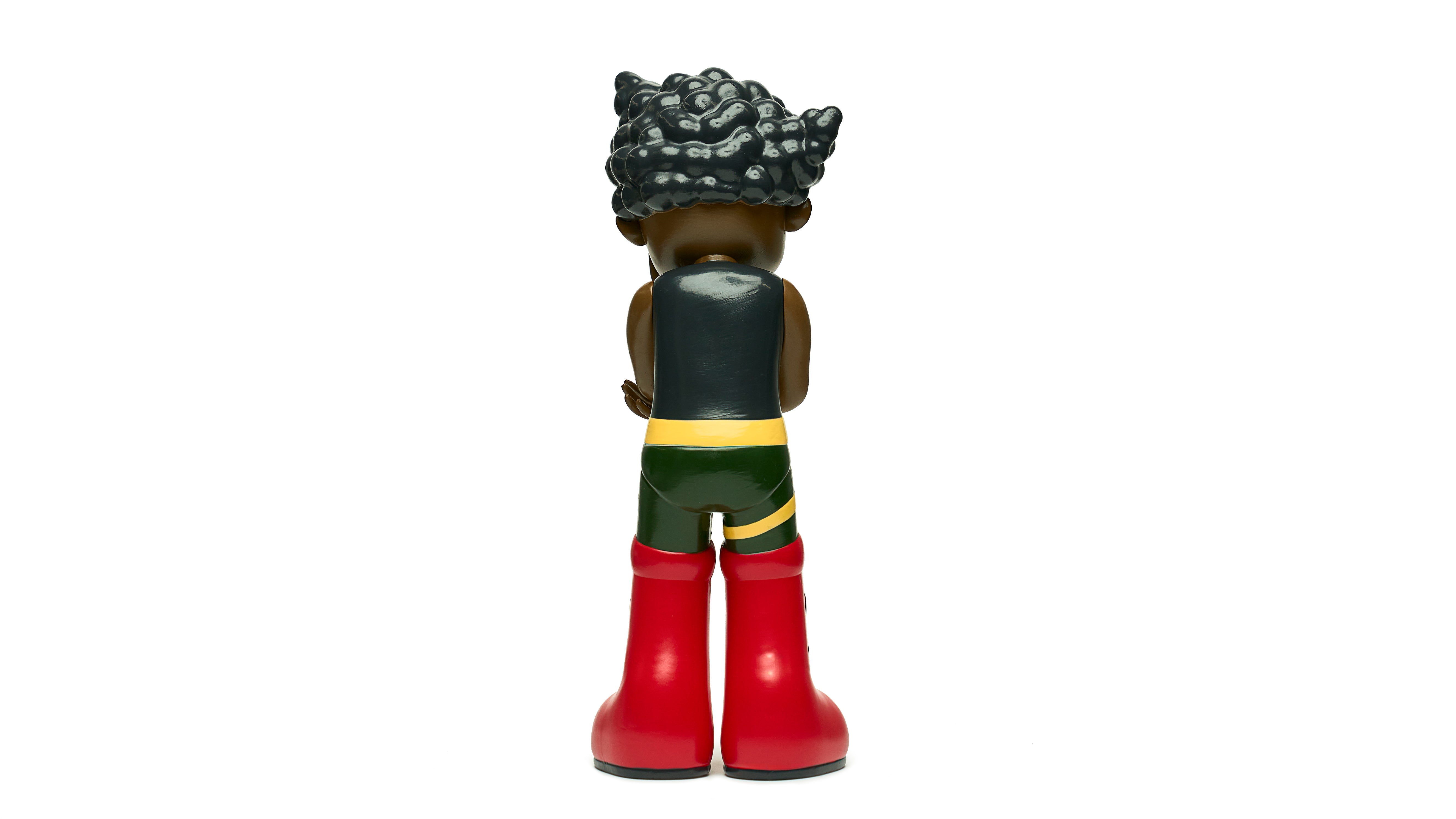Colorway: Brown skin tone, black hair, black shirt, green/yellow shorts, red boots with black accents